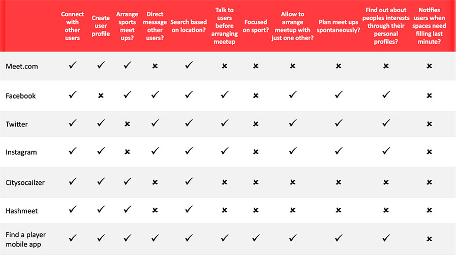 I conducted Competitive Analysis highlighting the common features across websites and apps that already exist