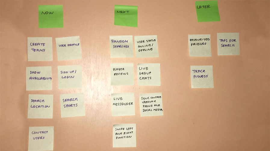 The visual below is a card sort to begin categorisation of features of the app.